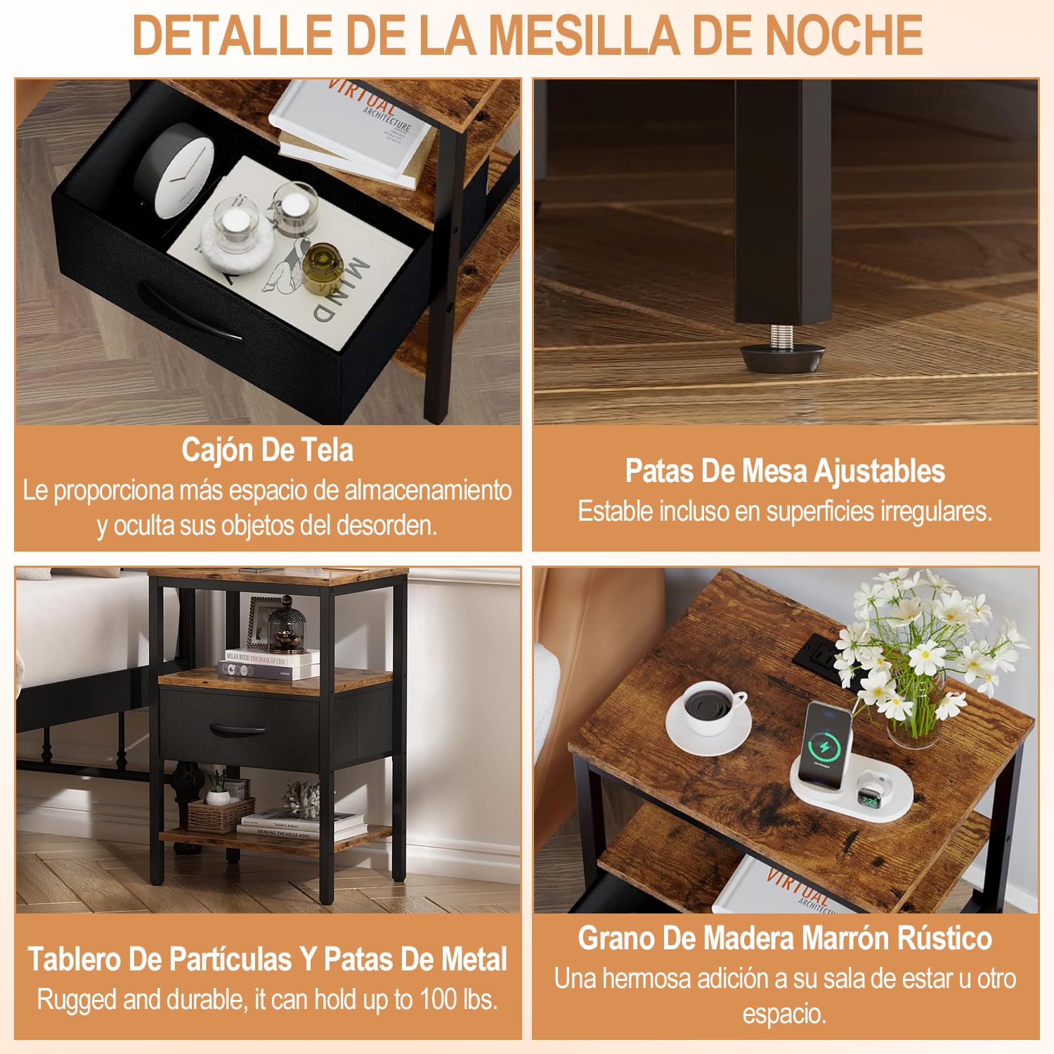- 【Mesilla de Noche con Estación de Carga】2 puertos USB y 2 tomas de corriente están en la mesilla de noche del dormitorio,la energía está a su alcance,es muy conveniente para cargar lámparas de escritorio, teléfonos móviles y ordenadores junto a su escritorio, cama y sofá.