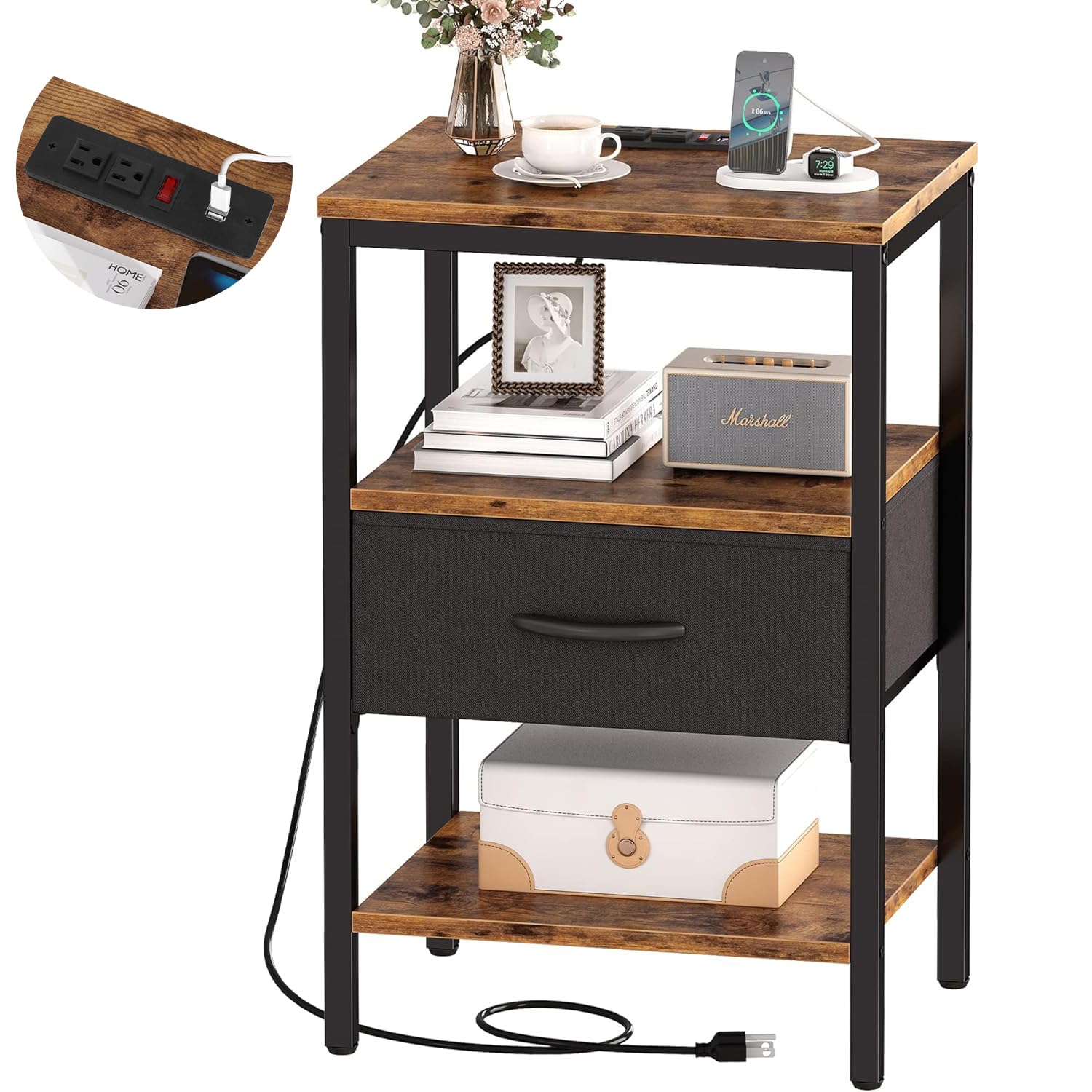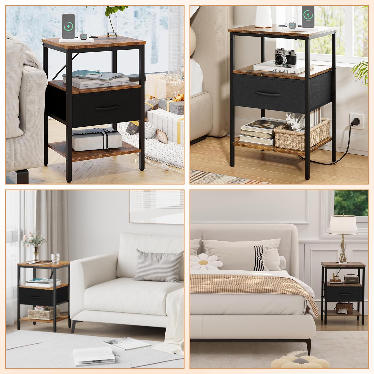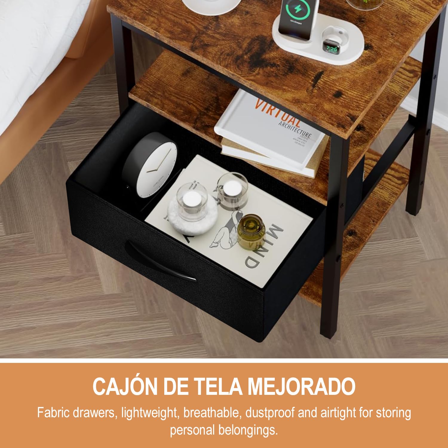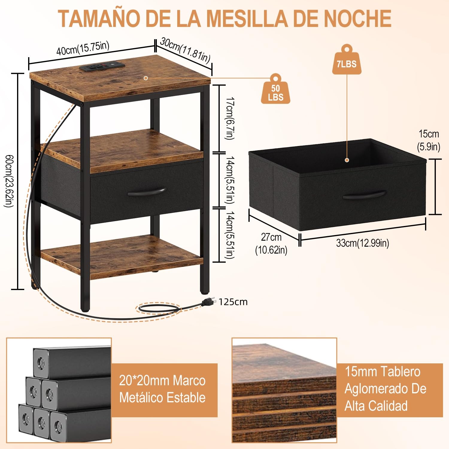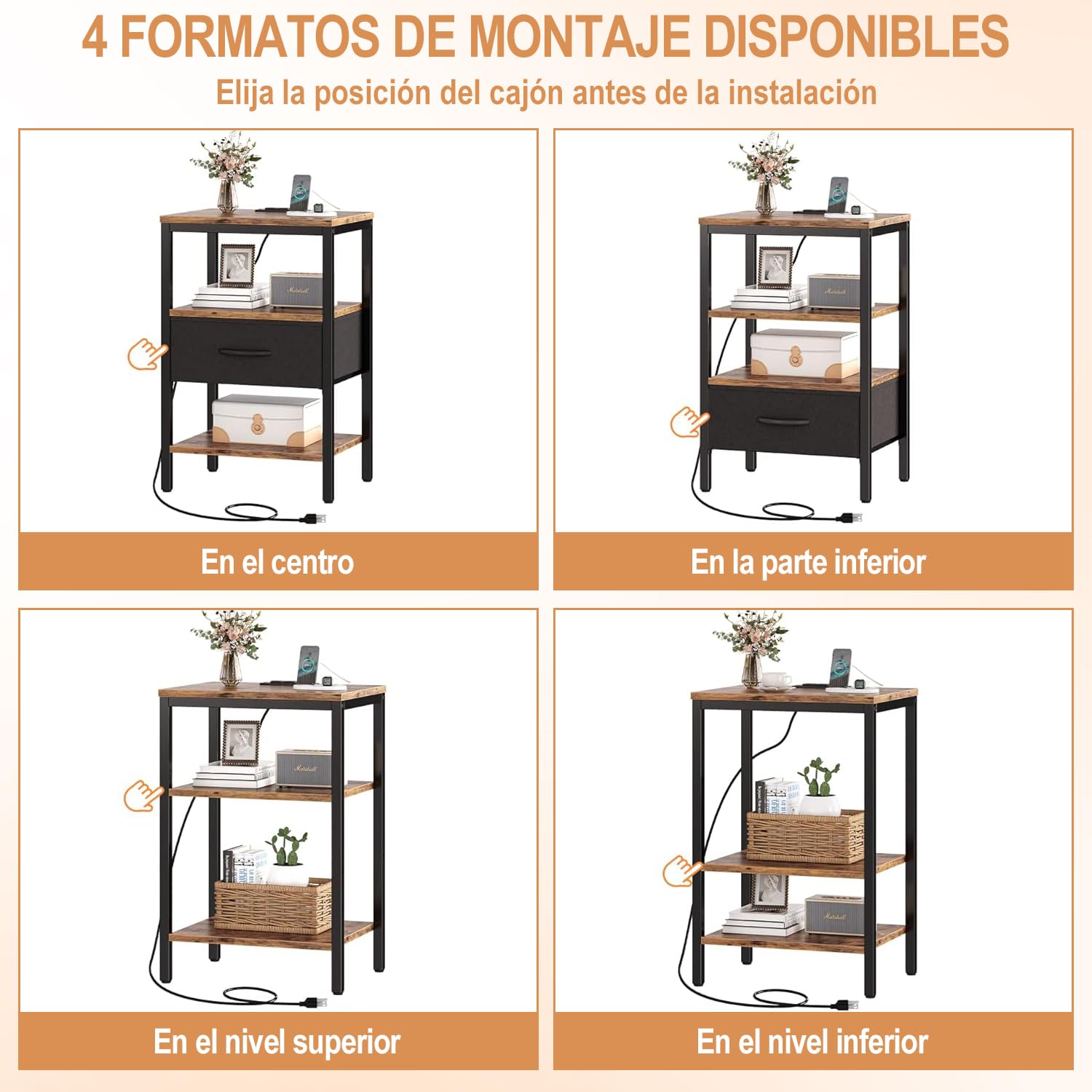 - 【Mesa Auxiliar de Diseño Compacto】Con 3 estantes de almacenamiento y 1 cajón de tela en la mesita de noche, es sin duda suficiente para almacenar diversos artículos. Hay 2 posiciones de instalación de cajones disponibles, puede instalarlo para alturas de almacenamiento necesarias. Maximiza la capacidad de almacenamiento,ideal para espacios pequeños.Dimensión total: 40x30x60cm.