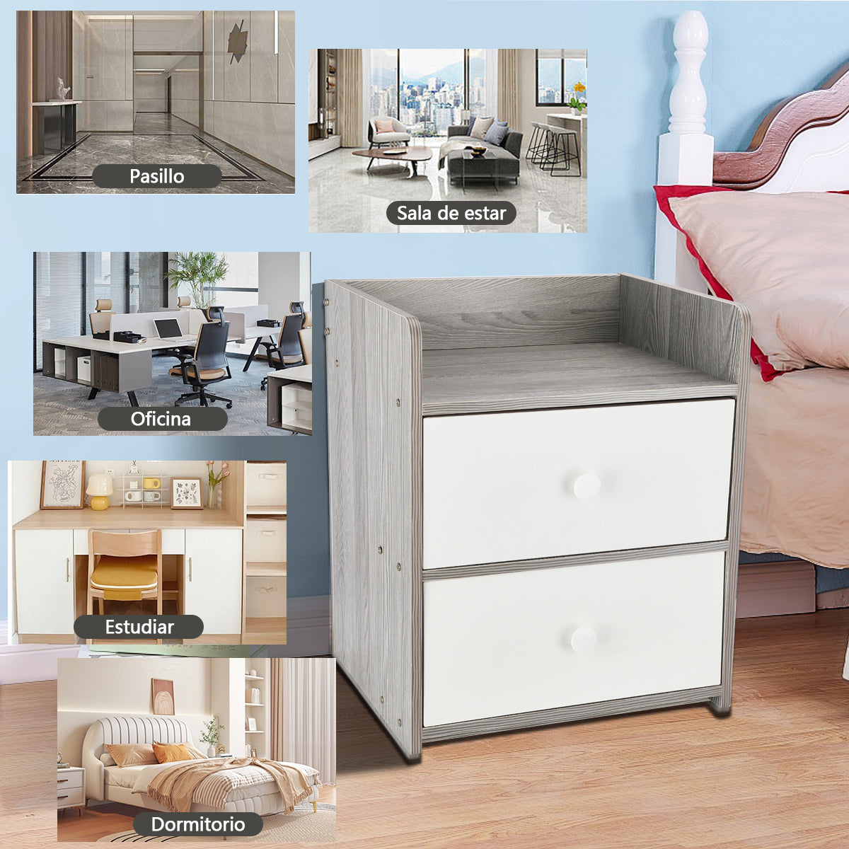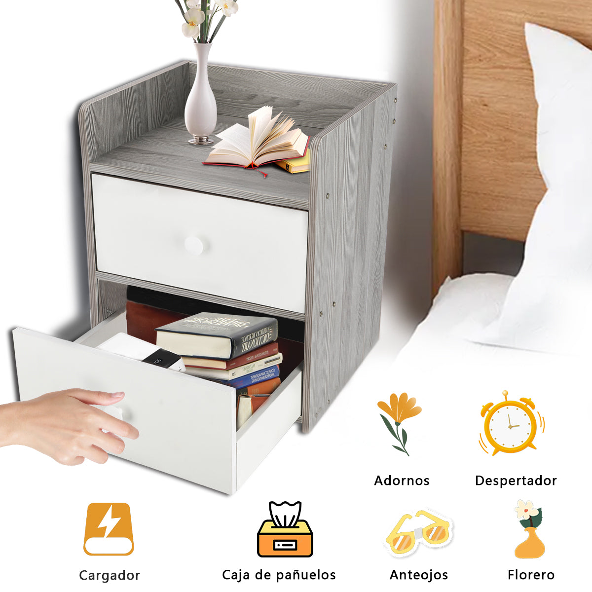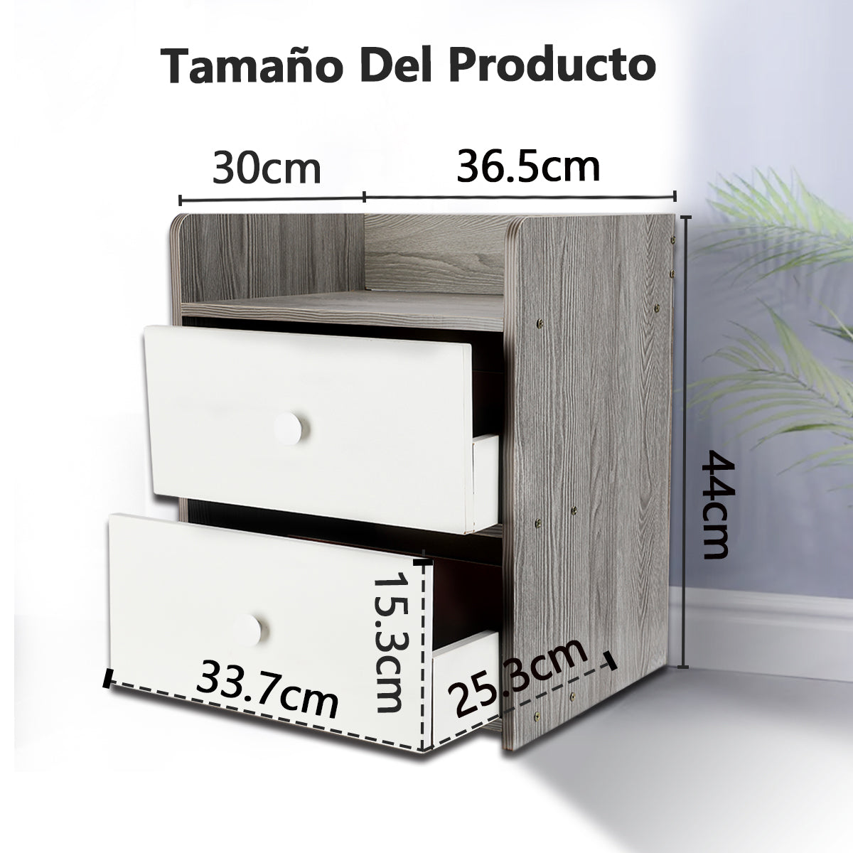 - Mesita de Noche de Almacenamiento de 2 Cajones:La mesita de noche tiene 2 cajones para almacenamiento deslizante son perfectos para uso privado, mientras que los cajones abiertos son convenientes para el uso diarioEl diseño de manija redonda fácil de jalar puede abrir y cerrar el cajón sin problemas.El diseño de dos cajones y el amplio escritorio te brindan un gran espacio de almacenaje y aumentan el valor de tu compra.