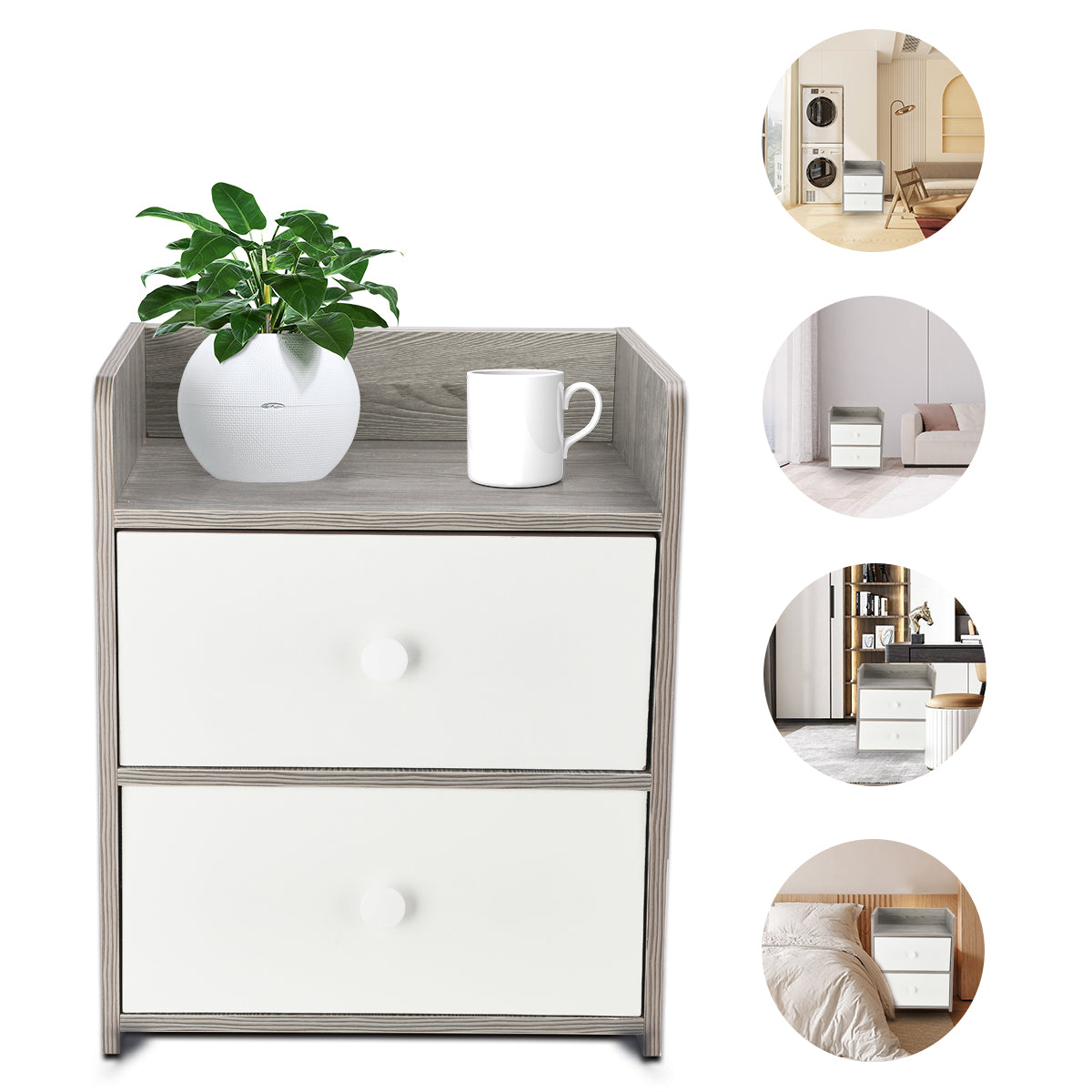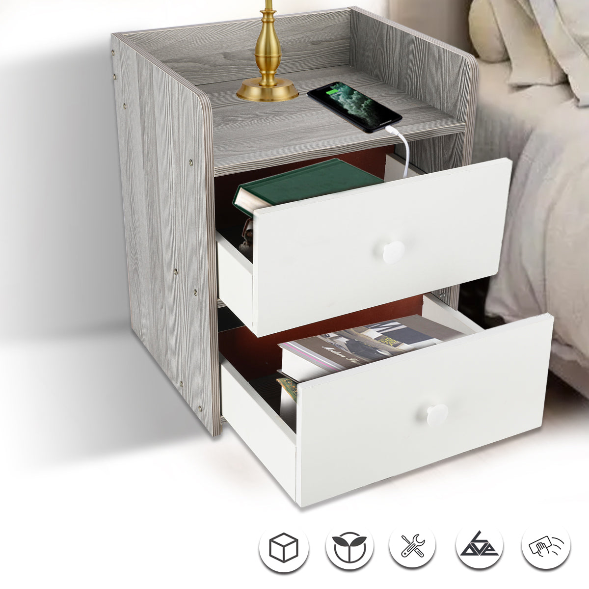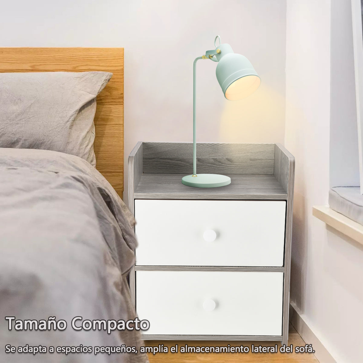 - Mesita de Noche de Almacenamiento de 2 Cajones:La mesita de noche tiene 2 cajones para almacenamiento deslizante son perfectos para uso privado, mientras que los cajones abiertos son convenientes para el uso diarioEl diseño de manija redonda fácil de jalar puede abrir y cerrar el cajón sin problemas.El diseño de dos cajones y el amplio escritorio te brindan un gran espacio de almacenaje y aumentan el valor de tu compra.