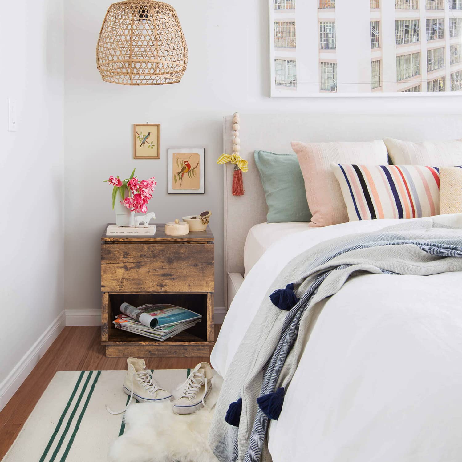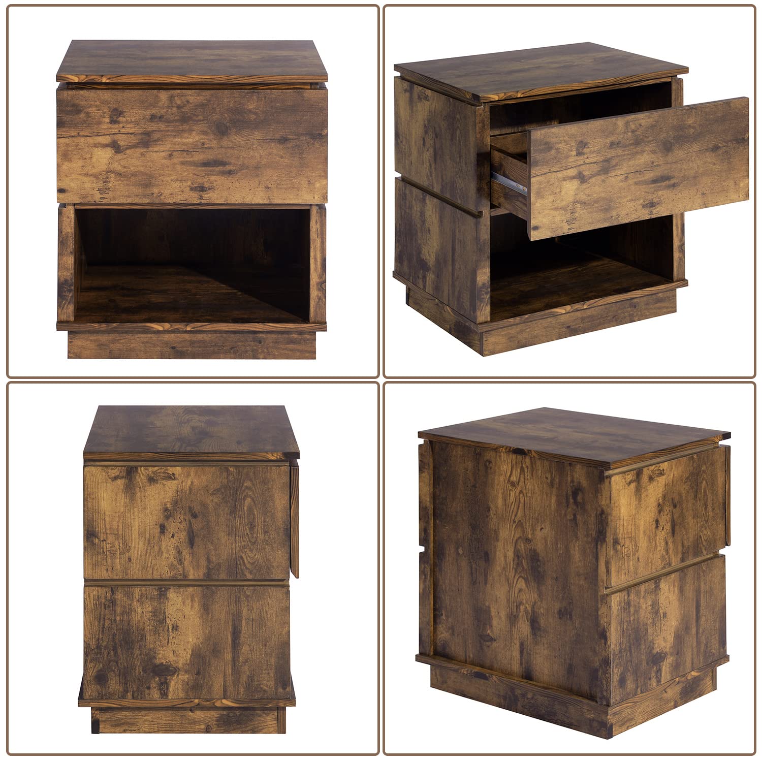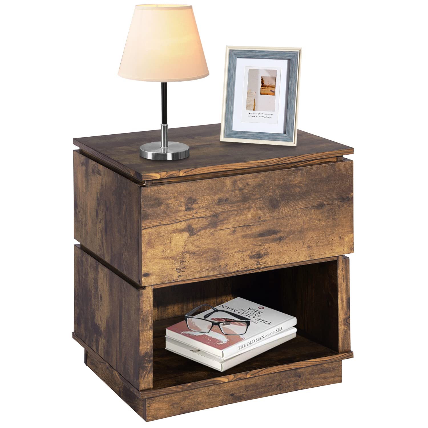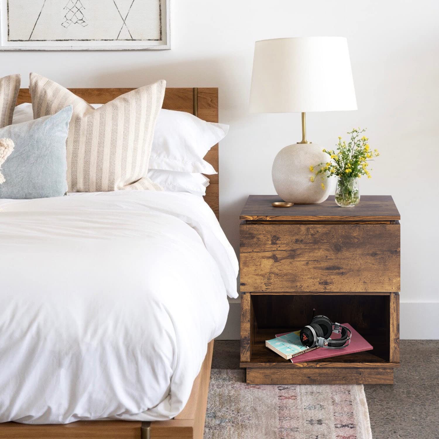 - 【Función De Súper Almacenamiento】- La mesita de noche con un cajón y un compartimento de almacenamiento frontal abierto proporciona suficiente espacio de almacenamiento para almacenar y exhibir, lo que puede tener sus cosas a mano.