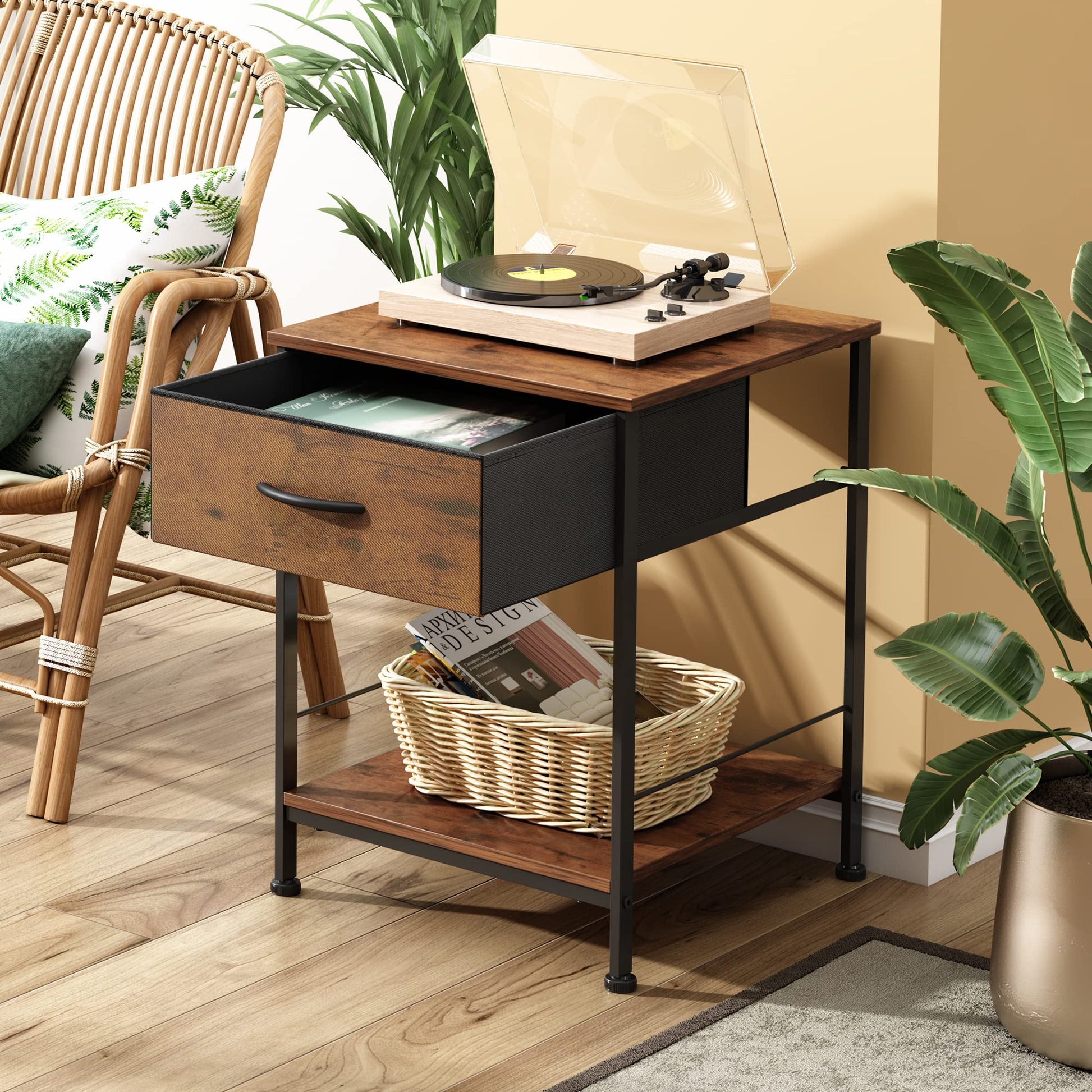- Amplio espacio de almacenamiento: mientras que la mesa auxiliar es linda, sorprendentemente tiene espacio para mucho. La mesita de noche tiene 1 cajón para almacenamiento oculto y 2 espacios para almacenamiento abierto. El contenedor de tela es perfecto para cosas privadas y la parte superior y el estante abierto para lámpara, reloj, libros, etc.