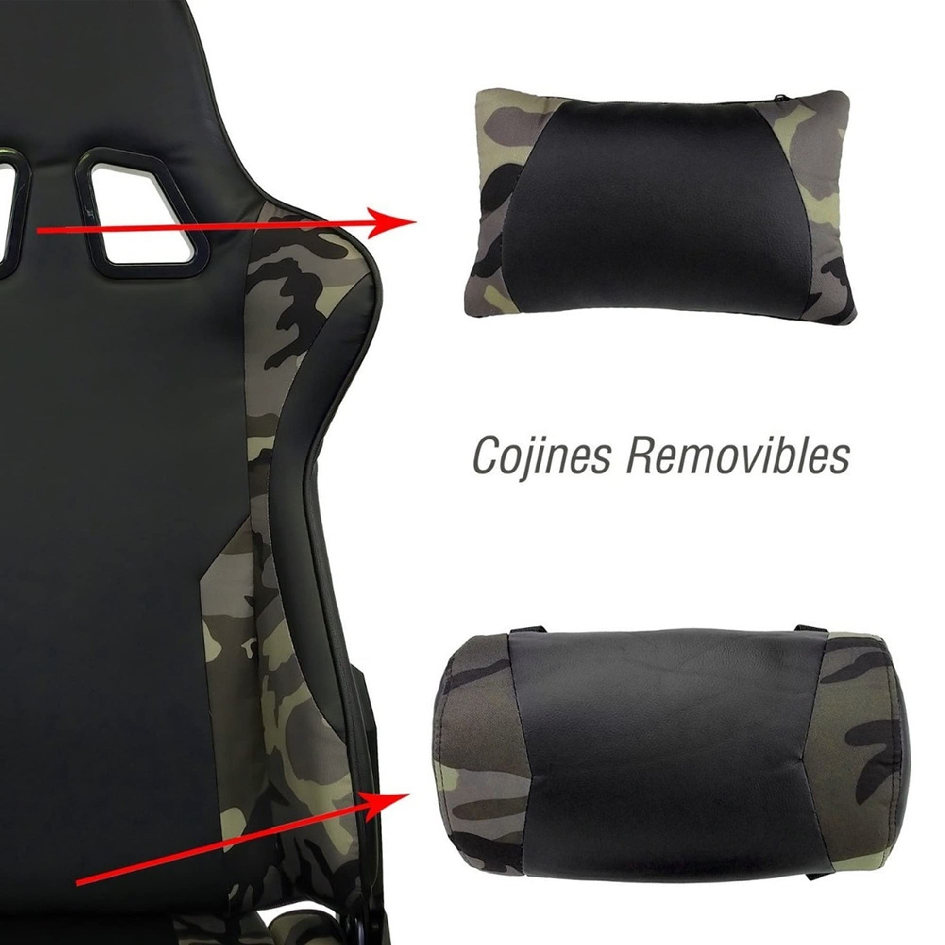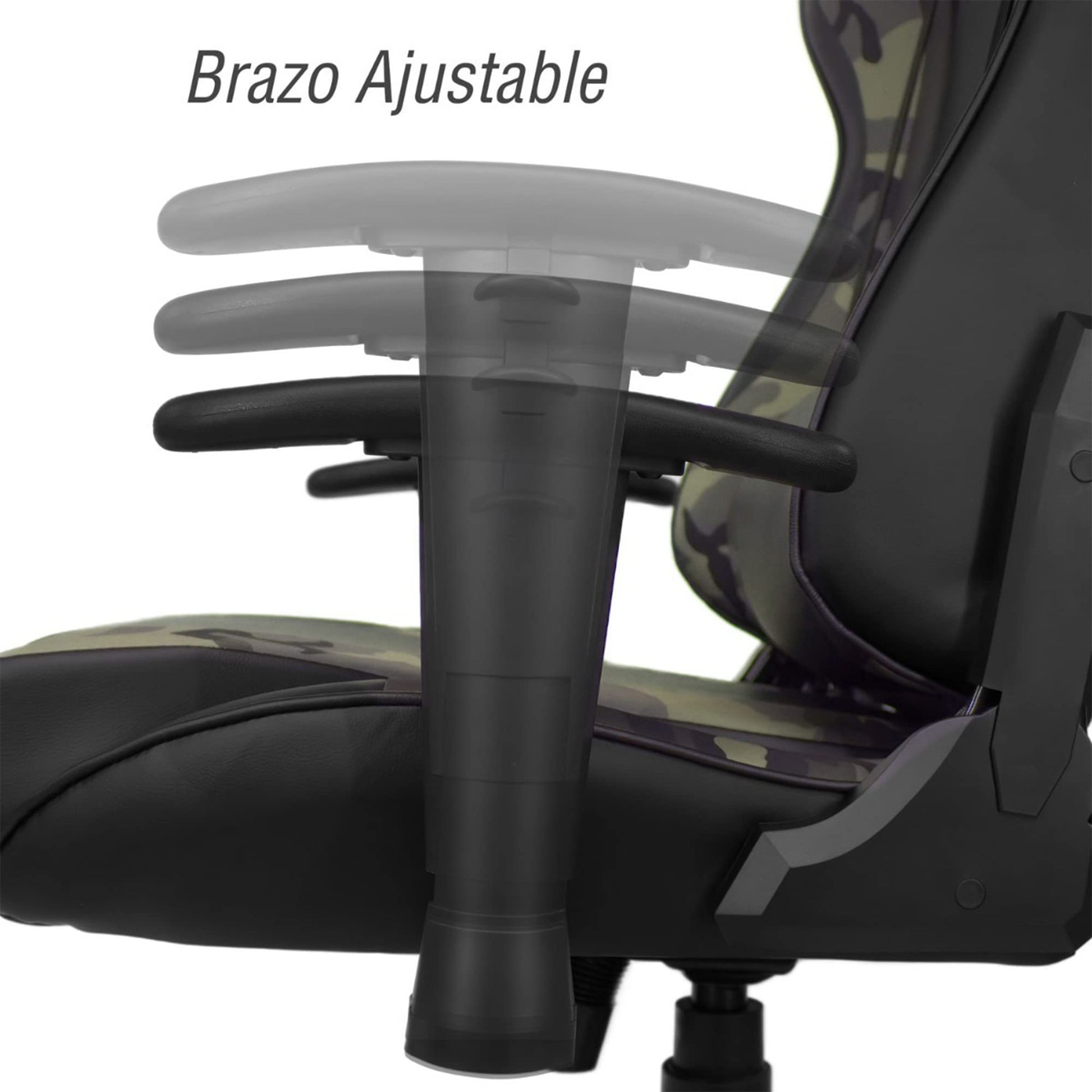 - ALTURA AJUSTABLE El asiento de esta silla gamer camuflajeada se regula fácilmente 15 cm gracias a la palanca, con lo cual podrás ajustarla a tu nivel.
