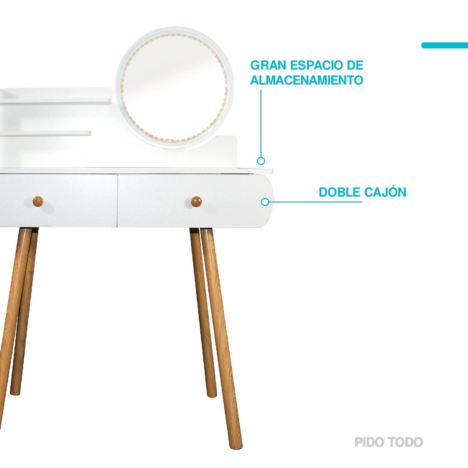 - DISEÑO CON ESTILO: el diseño lineal muestra simplicidad y moda moderna en su dormitorio. Este tocador de maquillaje incluye un espejo y luces ajustables de 3 niveles. Este escritorio ofrece una cómoda experiencia de maquillaje.